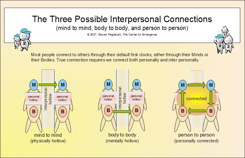 We have the three ways in which we can connect, mind body wise; [1] mind to mind, [2] body to body, and [3] person to person.